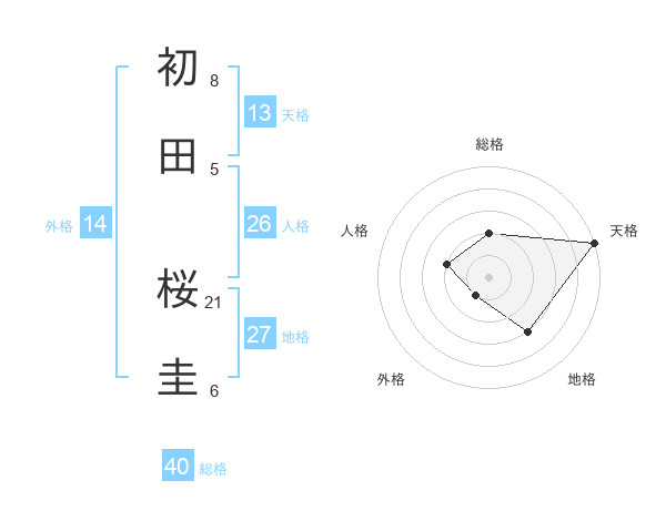 初田 桜圭さんを姓名の画数から五運を鑑定