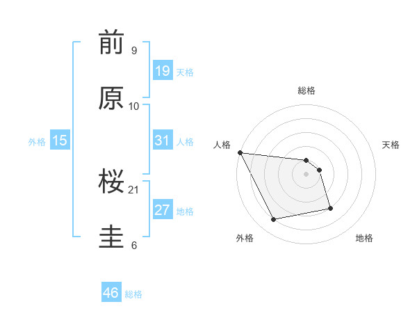 前原 桜圭さんを姓名の画数から五運を鑑定