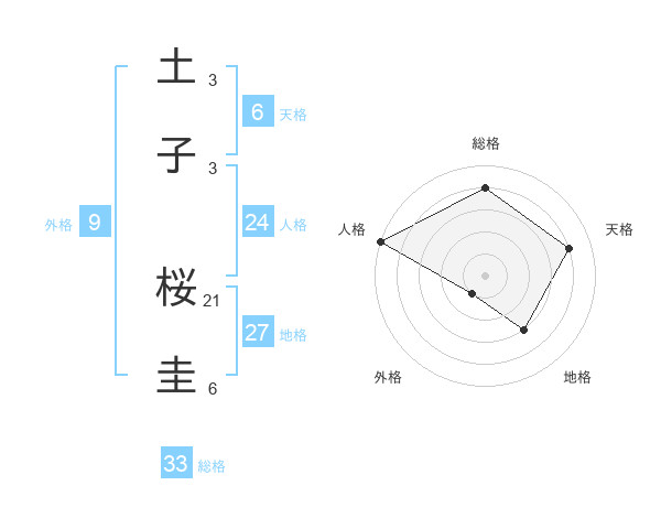 土子 桜圭さんを姓名の画数から五運を鑑定