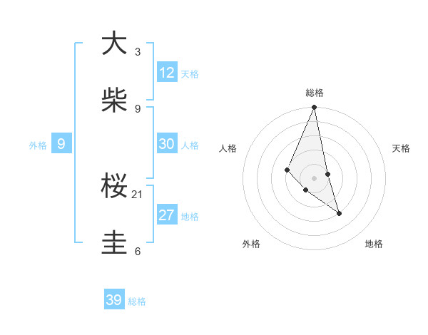 大柴 桜圭さんを姓名の画数から五運を鑑定