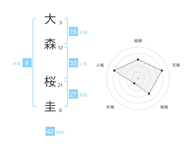 大森 桜圭さんを姓名の画数から五運を鑑定