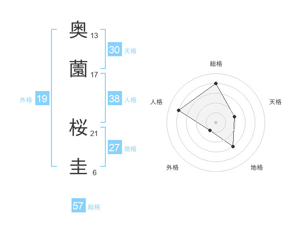 奥薗 桜圭さんの総格は57画の4点!