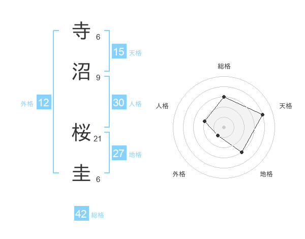寺沼 桜圭さんの総格は42画の3点!