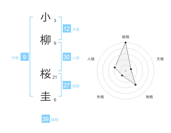 小柳 桜圭さんの総格は39画の5点!