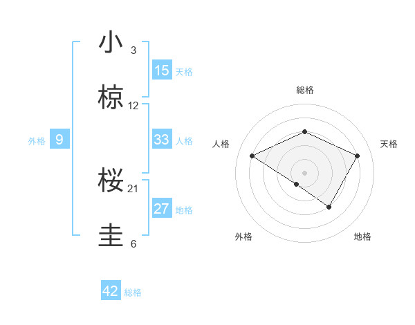 小椋 桜圭さんの総格は42画の3点!