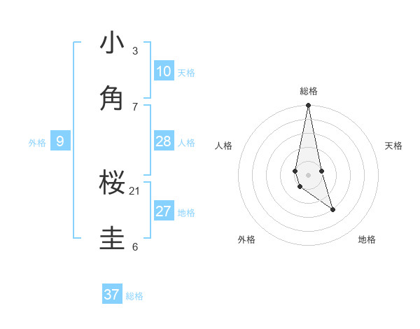 小角 桜圭さんの総格は37画の5点!
