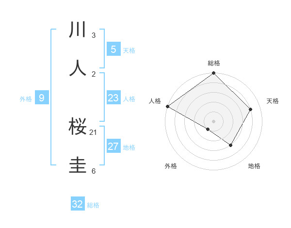 川人 桜圭さんの総格は32画の5点!