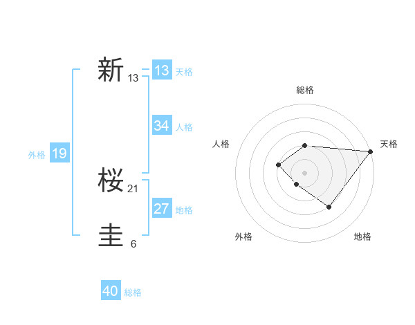 新 桜圭さんの天格は13画の5点!