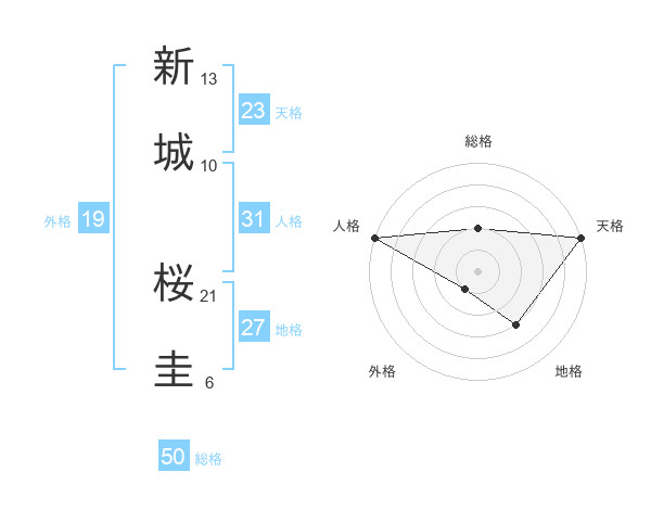 新城 桜圭さんを姓名の画数から五運を鑑定