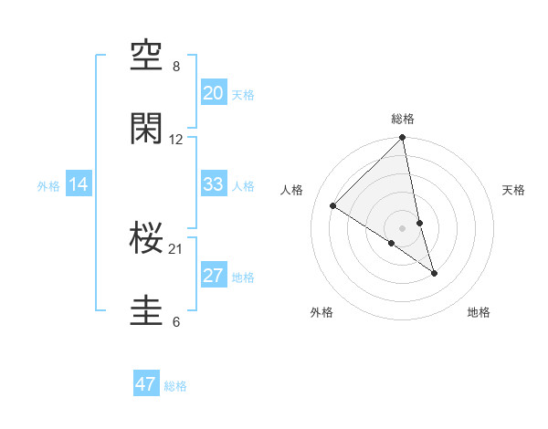 空閑 桜圭さんの総格は47画の5点!