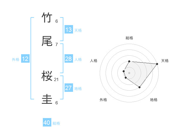 竹尾 桜圭さんを姓名の画数から五運を鑑定