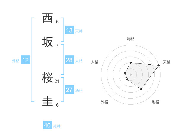 西坂 桜圭さんを姓名の画数から五運を鑑定