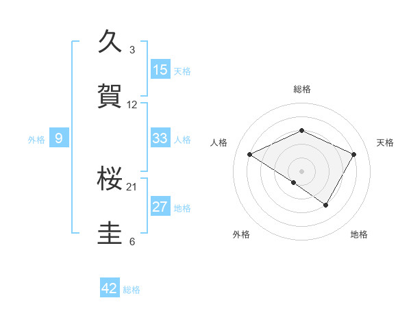 久賀 桜圭さんを姓名の画数から五運を鑑定