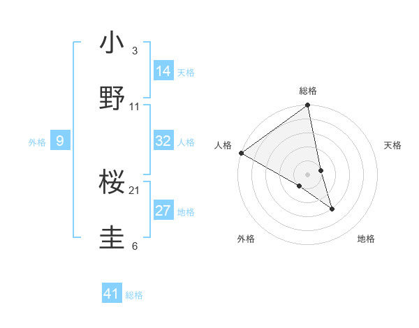 小野 桜圭さんを姓名の画数から五運を鑑定