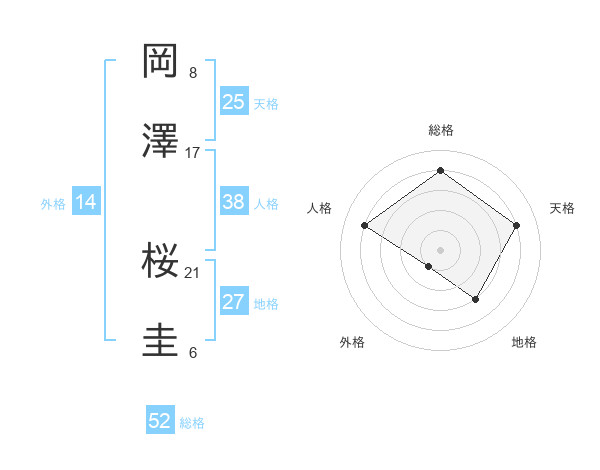 岡澤 桜圭さんを姓名の画数から五運を鑑定