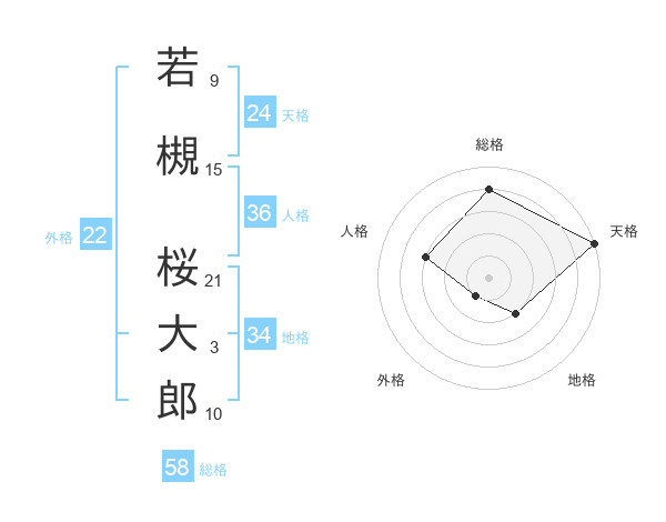若槻 桜大郎さんを姓名の画数から五運を鑑定