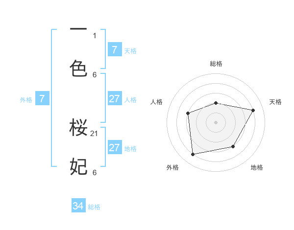 一色 桜妃さんの総格は34画の2点!