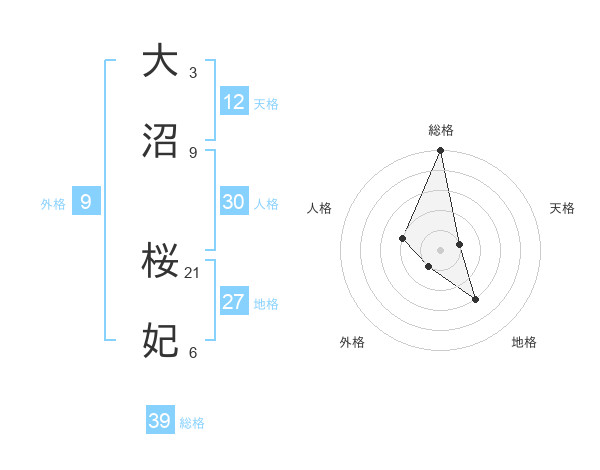 大沼 桜妃さんの総格は39画の5点!