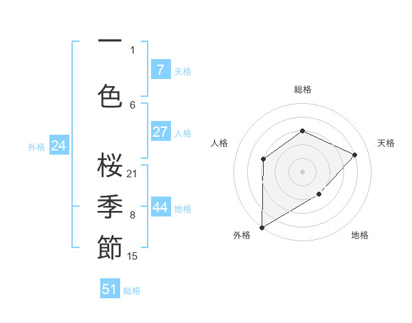 一色 桜季節さんを姓名の画数から五運を鑑定