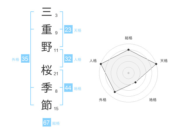 三重野 桜季節さんを姓名の画数から五運を鑑定