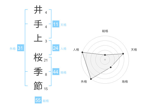 井手上 桜季節さんを姓名の画数から五運を鑑定