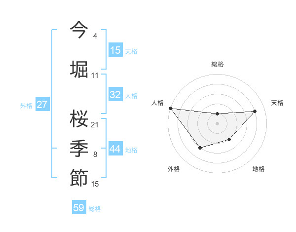 今堀 桜季節さんを姓名の画数から五運を鑑定