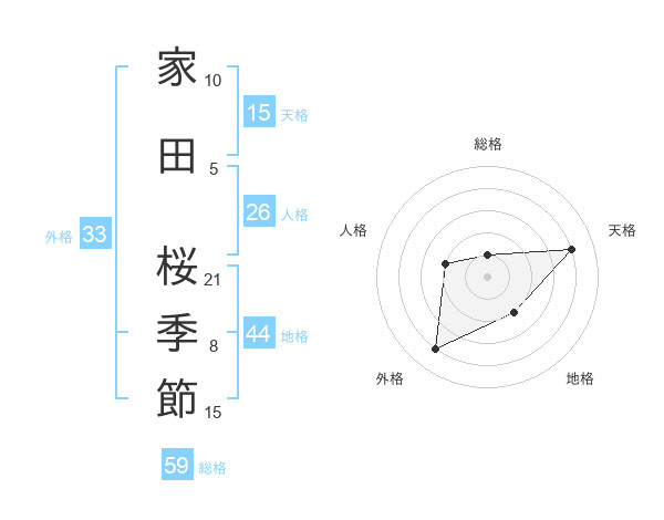 家田 桜季節さんを姓名の画数から五運を鑑定