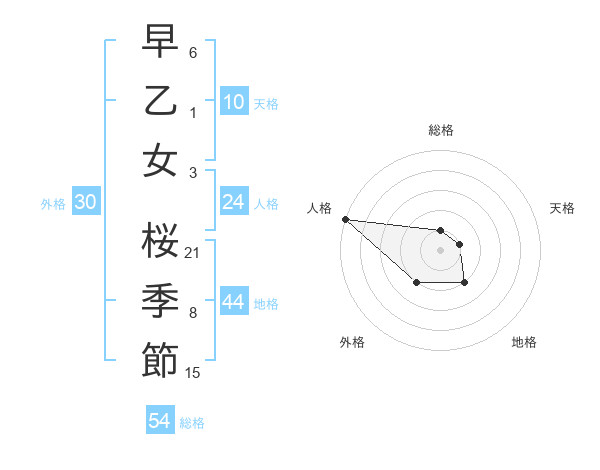 早乙女 桜季節さんの総格は54画の1点