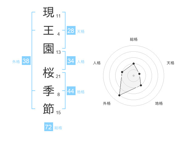 現王園 桜季節さんを姓名の画数から五運を鑑定