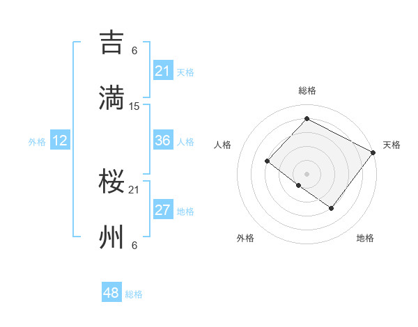吉満 桜州さんの総格は48画の4点!