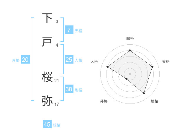 下戸 桜弥さんの総格は45画の4点!