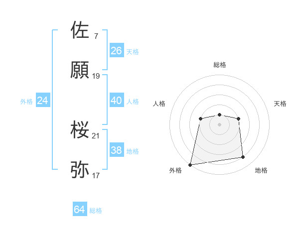 佐願 桜弥さんを姓名の画数から五運を鑑定