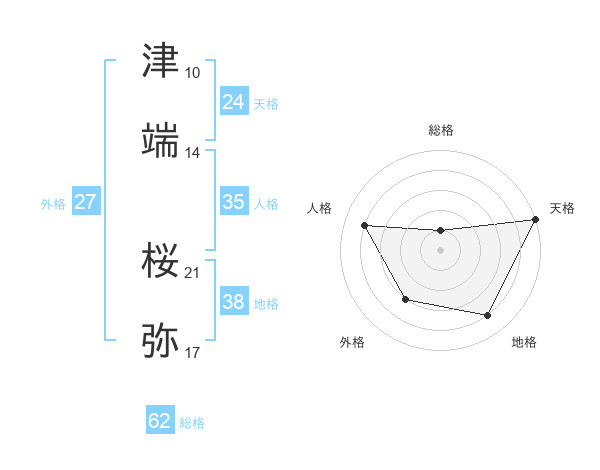 津端 桜弥さんを姓名の画数から五運を鑑定
