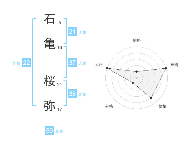 石亀 桜弥さんを姓名の画数から五運を鑑定