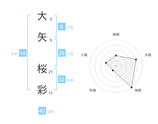 大矢 桜彩さんを姓名の画数から五運を鑑定