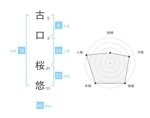 古口 桜悠さんを姓名の画数から五運を鑑定