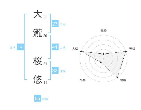 大瀧 桜悠さんを姓名の画数から五運を鑑定