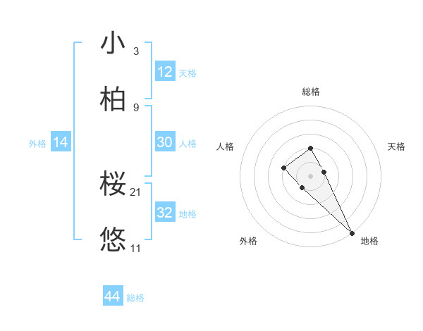 小柏 桜悠さんの総格は44画の2点!