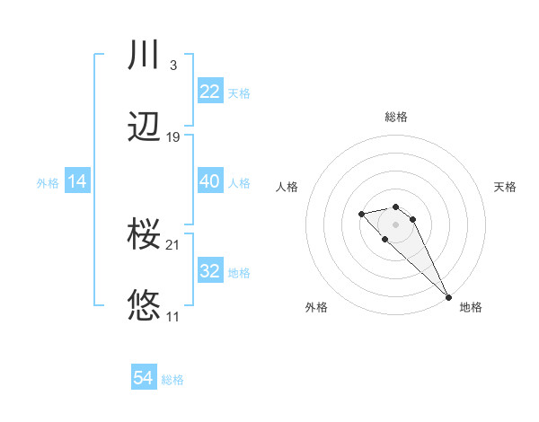 川辺 桜悠さんの天格は22画の1点!