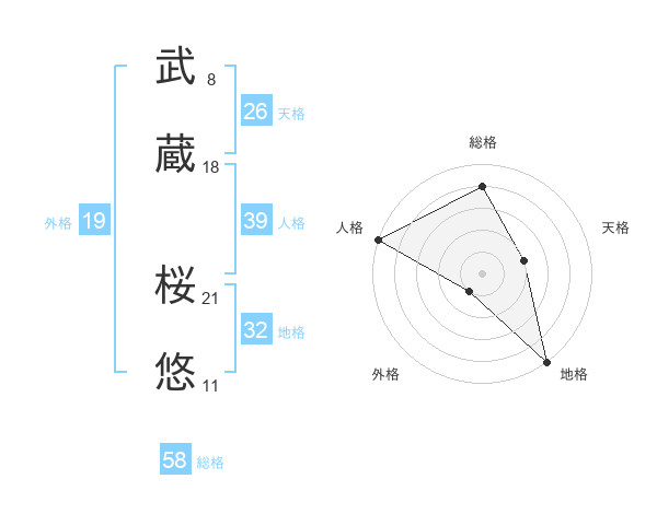 武蔵 桜悠さんを姓名の画数から五運を鑑定