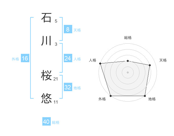 石川 桜悠さんを姓名の画数から五運を鑑定