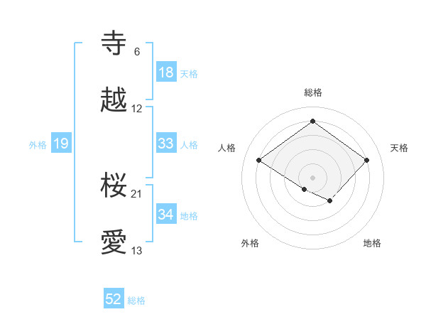 寺越 桜愛さんを姓名の画数から五運を鑑定