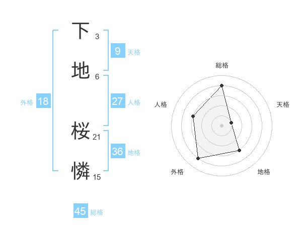 下地 桜憐さんを姓名の画数から五運を鑑定