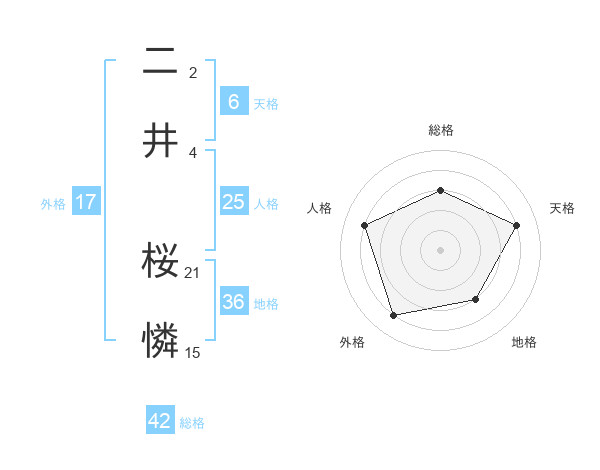 二井 桜憐さんを姓名の画数から五運を鑑定