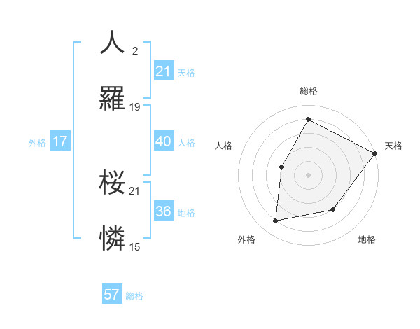人羅 桜憐さんを姓名の画数から五運を鑑定