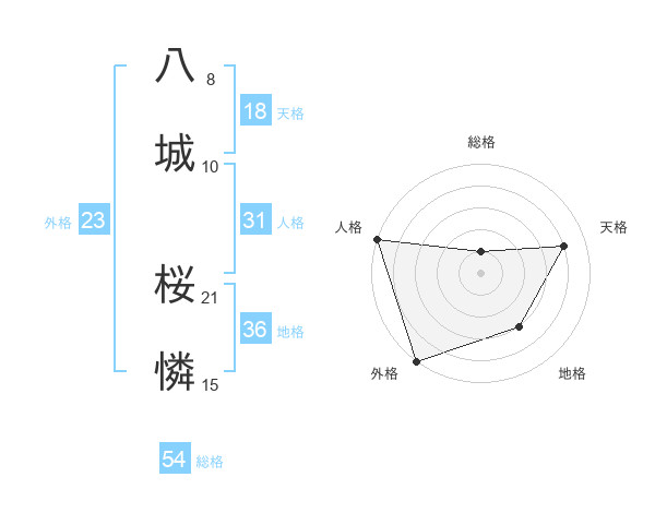 八城 桜憐さんの総格は54画の1点!