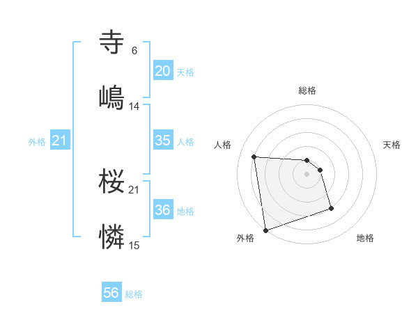 寺嶋 桜憐さんを姓名の画数から五運を鑑定