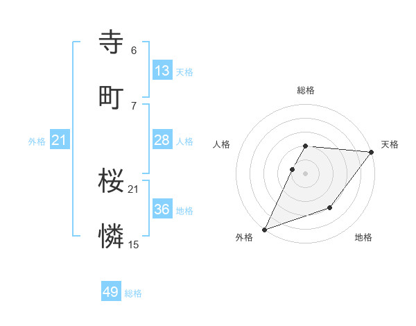 寺町 桜憐さんを姓名の画数から五運を鑑定