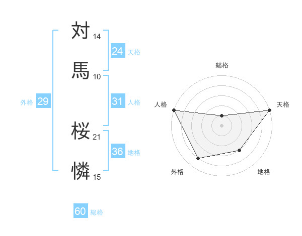 対馬 桜憐さんの総格は60画の1点!