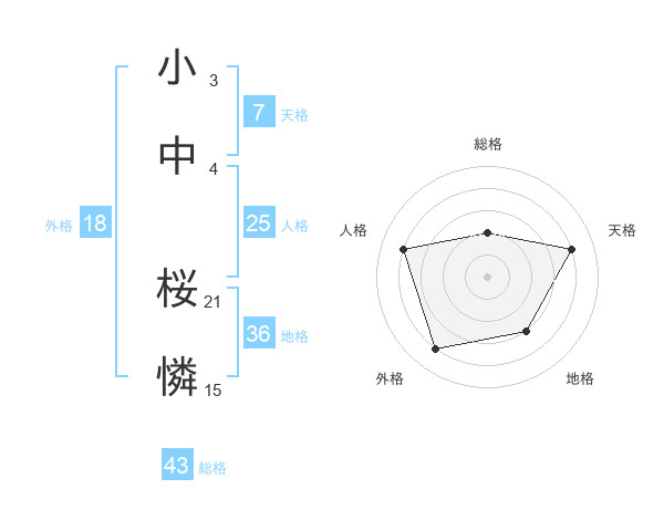 小中 桜憐さんの総格は43画の2点!